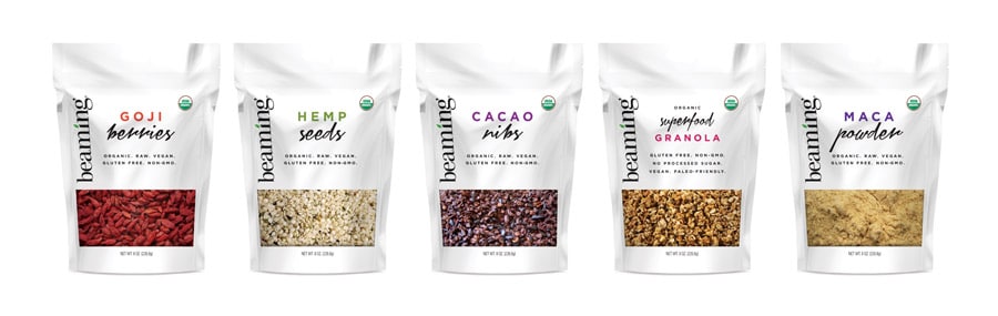 Jenn David Design revamped Beaming Wellness’ snack line along with their extensive drink and salad lines. Not only did we upgrade their packaging design but we also made their labeling fully FDA compliant which had been lacking in their previous labeling. Information is clear and easy to read—which makes the line much more user-friendly—and highlights important certification logos and key selling points. Jenn David Design revamped Beaming Wellness’ snack line along with their extensive drink and salad lines. Not only did we upgrade their packaging design but we also made their labeling fully FDA compliant which had been lacking in their previous labeling. Information is clear and easy to read—which makes the line much more user-friendly—and highlights important certification logos and key selling points.