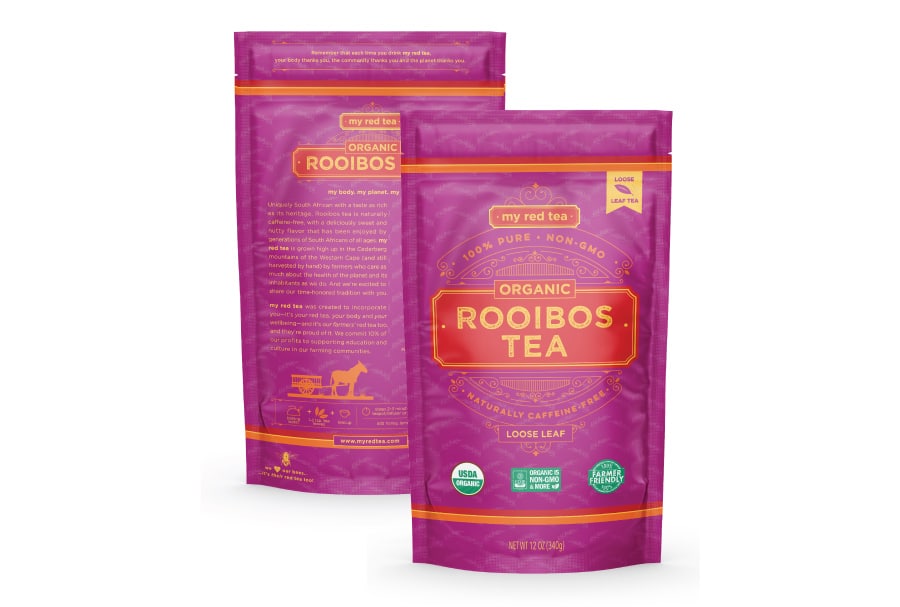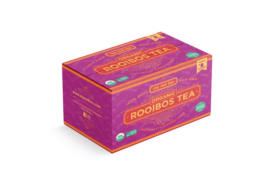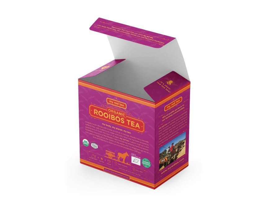 We partnered with My Red Tea to establish their new brand and launch their organic Rooibos Tea product line. An authentically South African product, we embraced the colorful and vibrant art style of the area as an inspiration for this tea packaging design. Essential callouts highlight the key selling points while telling the brand story to further the emotional connection to the brand.